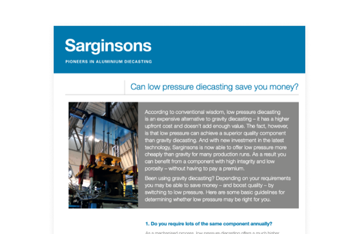 Sarginsons is a Midlands-based aluminium diecaster. The manufacturer was at the forefront of technology, but its online presence didn’t reflect that leadership. The company therefore wanted a web presence and content that would showcase its range of diecasting capabilities, with an emphasis on its low pressure offering. Low pressure diecasting was perceived as being expensive, and therefore the company wanted to change perceptions and educate its customer base about the benefits of low pressure over traditional methods.