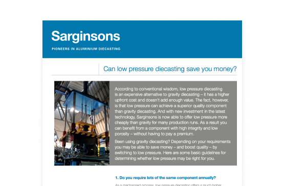 After a tour of the foundry and in-depth discussions with stakeholders, we wrote the article ‘ Can low pressure save you money?’. The angle was designed to combat the primary barrier to sale – price – and therefore give Sarginsons the greatest value.